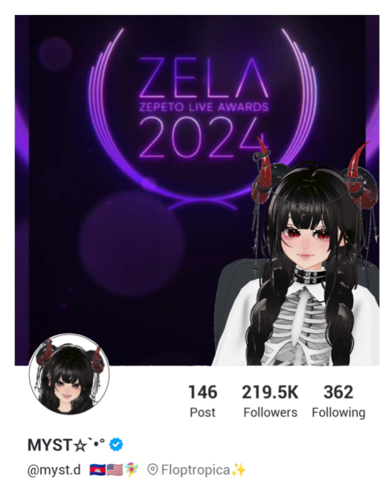 MYST is also a verified content creator on Zepeto, active in the Creator Program, and her current account has been active since 2021.